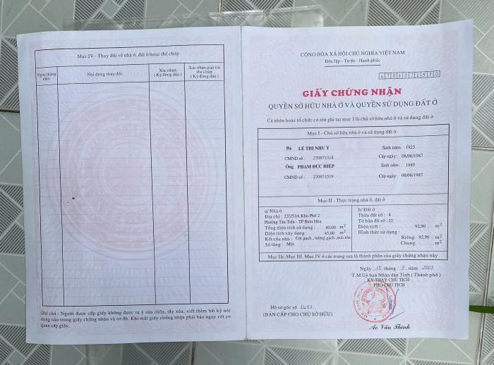 Khu vực: Thành phố Biên Hòa, Đồng Nai Ngày: 20:45 | 04/03/2026 Giá: 1,400,000,000 Vnđ