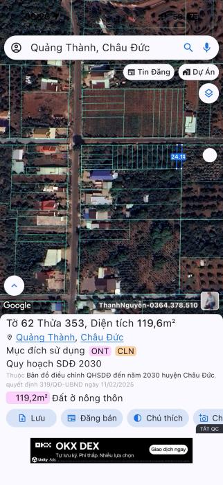 Mình cần bán lô đất đá bạc - châu đức đường nhựa 5x23 có 100 thổ cư Giá bán chỉ 650tr bớt lộc Gọi ngay 0902787552- 0937849600 lvtt chủ