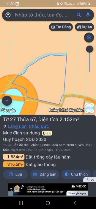 Khu vực: Huyện Châu Đức, Bà Rịa Vũng Tàu Ngày: 15:10 | 27/01/2026 Giá: 730,000,000 Vnđ