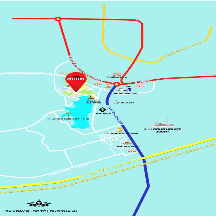- Ngay khu dân cư hiện hữu, Cách QL56 và DT770B nối thẳng về sân bay Long Thành, chỉ khoảng 800 mét