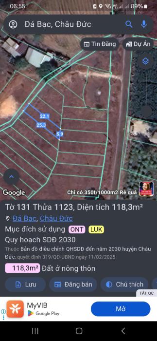Mình cần bán lô đất đá bạc - châu đức đường nhựa 5x23 có 100 thổ cư Giá bán chỉ 650tr bớt lộc Gọi ngay 0902787552- 0937849600 lvtt chủ