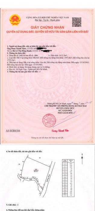 Diện tích: 3600 m2 Giá: 5,000,000,000 Vnđ Quận/Huyện: Huyện Châu Đức Tỉnh/Thành phố: Bà Rịa Vũng Tàu