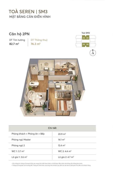 Giảm 2tỷ căn 3PN sân vườn VIP nhất tòa SM2, chỉ hơn 80tr/m2 vô địch về giá, HTLS 24T
