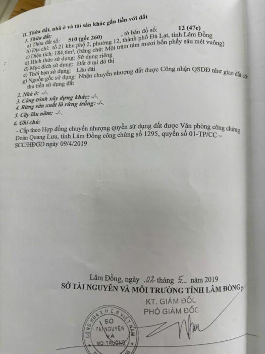 Diện tích: 185 m2 Giá: 7,200,000,000 Vnđ Quận/Huyện: Thành phố Đà Lạt Tỉnh/Thành phố: Lâm Đồng