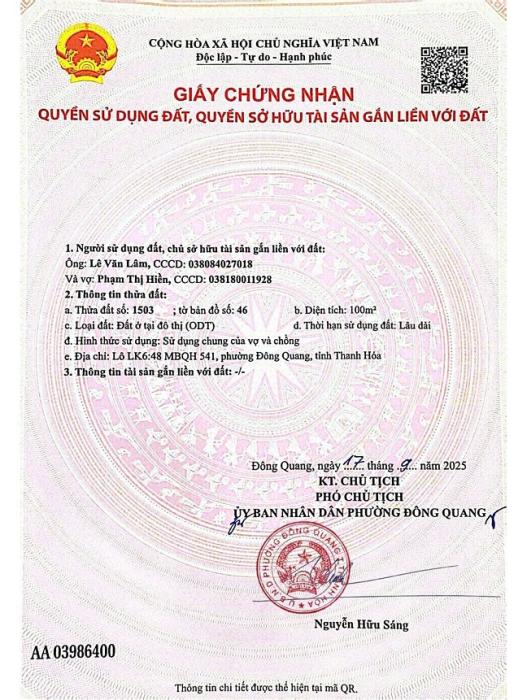 Khu vực: Thành phố Thanh Hóa, Thanh Hóa Ngày: 13:54 | 07/11/2025 Giá: 2,990,000,000 Vnđ