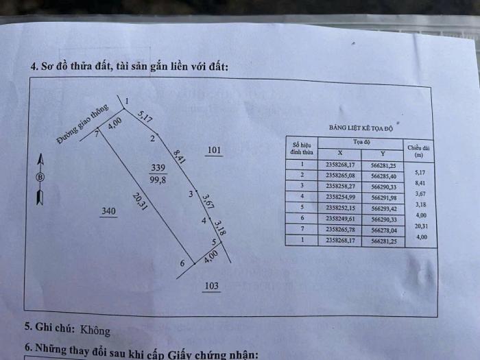 - Pháp lý: • Sổ đỏ chính chủ • Sang tên nhanh, không tranh chấp* Giao thông: • Ngõ 20 Lê Quý Đôn ô tô đi lại thuận tiện • Ngách vào đất ~2m, xe 4 chỗ vào tận nơi • Đường bê tông sạch sẽ, dân cư ổn định* Hiện trạng & sử dụng: • Phần đất CLN liền thửa, hiện tại xây dựng và sử dụng ổn định toàn bộ 95m² • Phù hợp: • Gia đình mua xây nhà ở lâu dài • Khách mua giữ tài sản khu trung tâm Gia Cẩm
