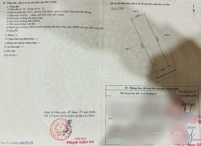 Diện tích: 100 m2 Giá: 7,500,000,000 Vnđ Quận/Huyện: Quận Lê Chân Tỉnh/Thành phố: Hải Phòng