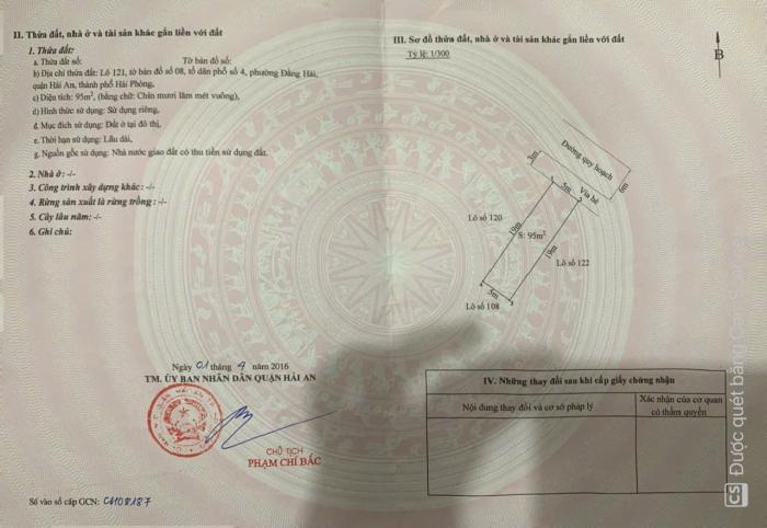 Lô đất nằm trong khu tái định cư Sao Sáng – quận Hải An – Hải Phòng, vị trí đẹp tuyến 2 ngay gần trục Ngô Gia Tự, khu dân cư đông đúc, hạ tầng hoàn thiện,...