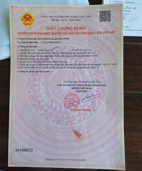 Khu vực: Huyện Phú Giáo, Bình Dương Ngày: 13:50 | 03/01/2026 Giá: 850,000,000 Vnđ