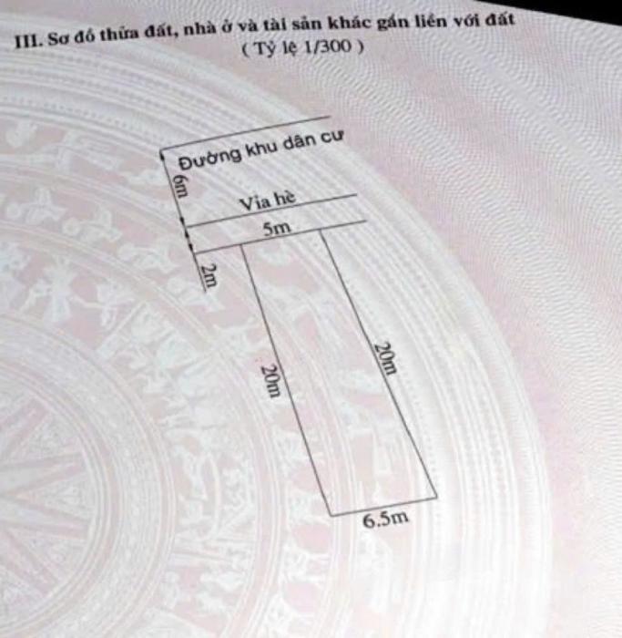 Mặt tiền: 5m – nở hậu 6,5m (hình thửa đẹp)