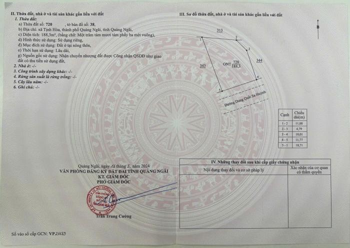 Diện tích: 188 m2 Giá: 1,975,000,000 Vnđ Quận/Huyện: Thành phố Quảng Ngãi Tỉnh/Thành phố: Quảng Ngãi