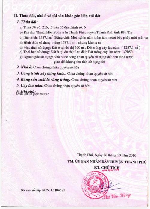Diện tích: 1587 m2 Giá: 16,800,000,000 Vnđ Quận/Huyện: Huyện Thạnh Phú Tỉnh/Thành phố: Bến Tre