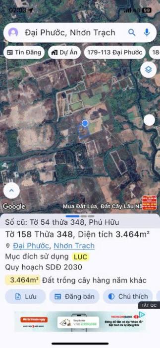 Diện tích: 3464 m2 Giá: 10,045,600,000 Vnđ Quận/Huyện: Huyện Nhơn Trạch Tỉnh/Thành phố: Đồng Nai