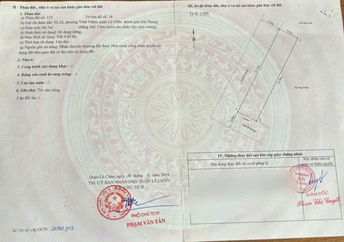 Diện tích: 97 m2 Giá: 6,560,000,000 Vnđ Quận/Huyện: Quận Lê Chân Tỉnh/Thành phố: Hải Phòng