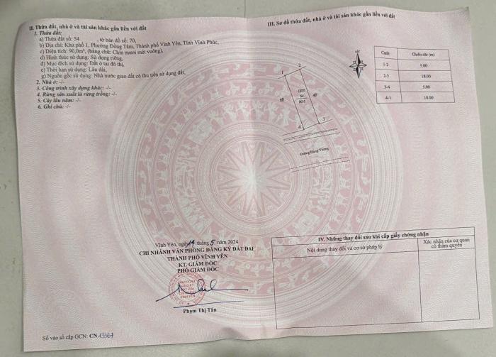 Khu vực: Thành phố Vĩnh Yên, Vĩnh Phúc Ngày: 07:59 | 21/04/2025 Giá: 1,000,000 Vnđ