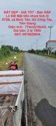 ĐẤT ĐẸP - GIÁ TỐT - Bán GẤP Lô Đất Mặt tiền nhựa tỉnh lộ 872B, xã Bình Tân, Gò Công Tây, Tiền Giang Diện tích: 774m2(18x43) đất cây lâu năm. (Cắt theo...