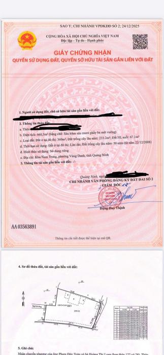 Khu vực: Thành phố Uông Bí, Quảng Ninh Ngày: 15:59 | 17/01/2026 Giá: 4,275,000,000 Vnđ