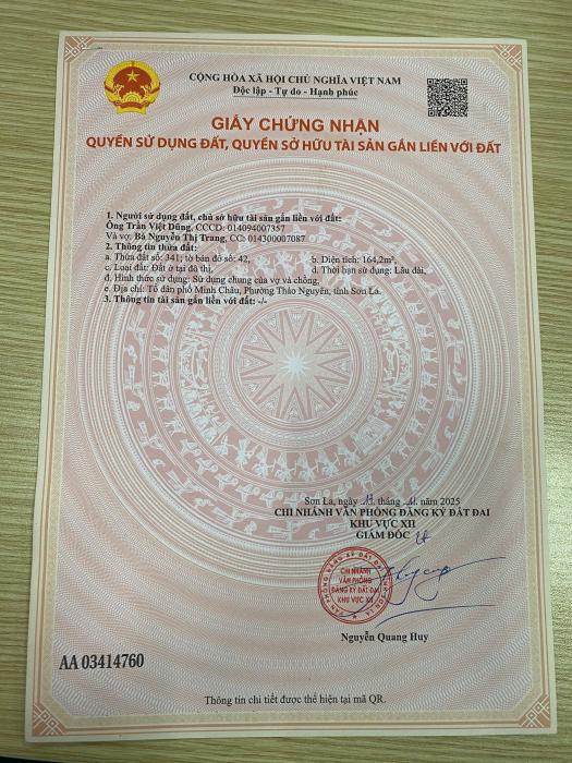 Bán lô đất 164,2m2 ( full thổ cư ) Tại Tổ Dân Phố Minh Châu – Phường Thảo Nguyên – Sơn La.