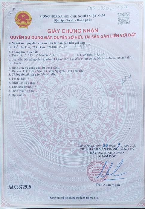 Khu vực: Huyện Bình Xuyên, Vĩnh Phúc Ngày: 15:40 | 07/01/2026 Giá: 1,000 Vnđ