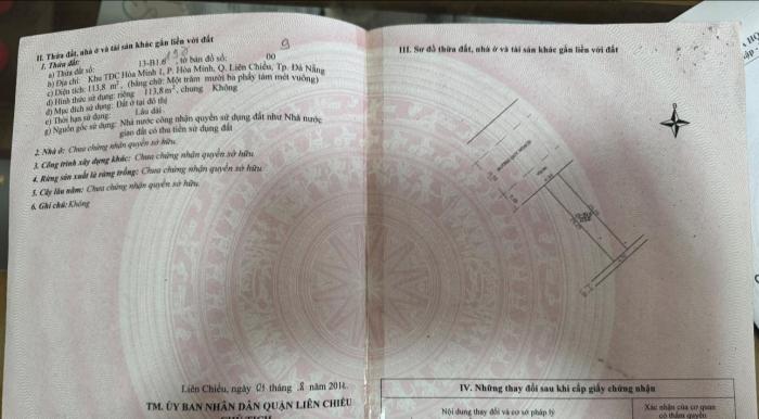 Diện tích: 114 m2 Giá: 11,500,000,000 Vnđ Quận/Huyện: Quận Liên Chiểu Tỉnh/Thành phố: Đà Nẵng