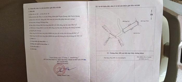 Diện tích: 168 m2 Giá: 1,000 Vnđ Quận/Huyện: Thành phố Tuyên Quang Tỉnh/Thành phố: Tuyên Quang