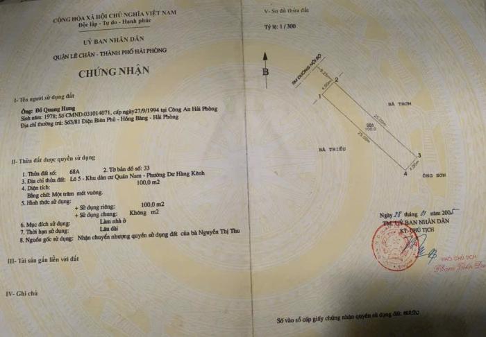 Khu vực: Quận Lê Chân, Hải Phòng Ngày: 15:35 | 05/02/2026 Giá: 4,250,000,000 Vnđ