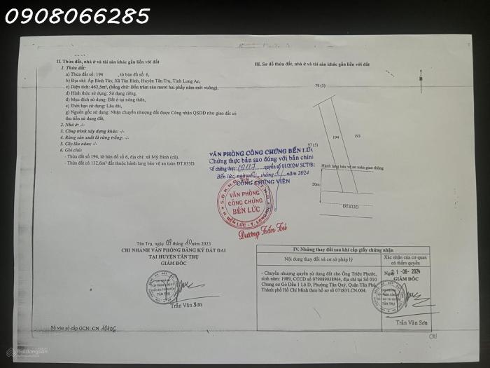 Diện tích: 462 m2 Giá: 7,500,000,000 Vnđ Quận/Huyện: Huyện Tân Trụ Tỉnh/Thành phố: Long An