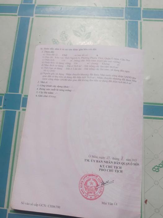 Diện tích: 116 m2 Giá: 800,000,000 Vnđ Quận/Huyện: Quận Ô Môn Tỉnh/Thành phố: Cần Thơ