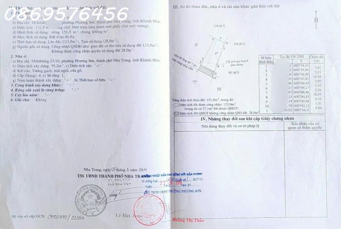 Diện tích: 151 m2 Giá: 7,500,000,000 Vnđ Quận/Huyện: Thành phố Nha Trang Tỉnh/Thành phố: Khánh Hòa