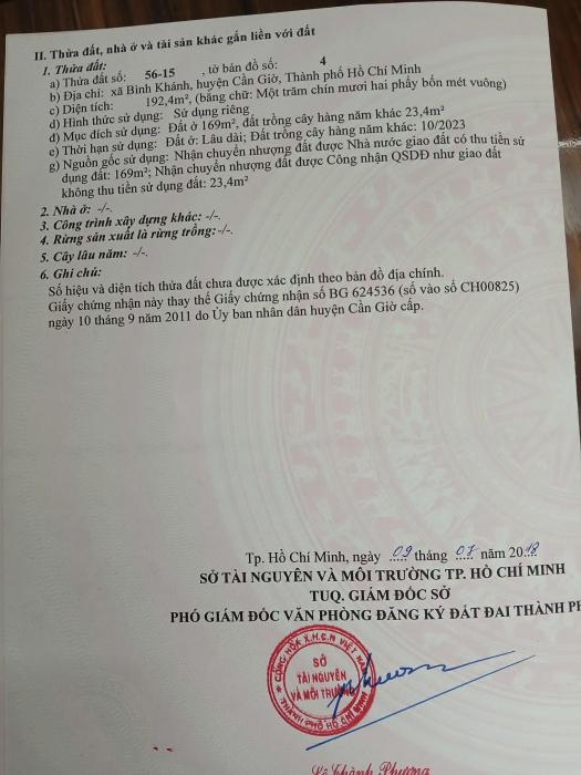 Diện tích: 193 m2 Giá: 3,350,000,000 Vnđ Quận/Huyện: Huyện Cần Giờ Tỉnh/Thành phố: Hồ Chí Minh