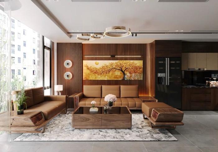 Tầng 6: "Trái tim" ngôi nhà - Phòng khách & Bếp sang trọng (Sẵn Sofa, bàn ăn, TV 75 inch).