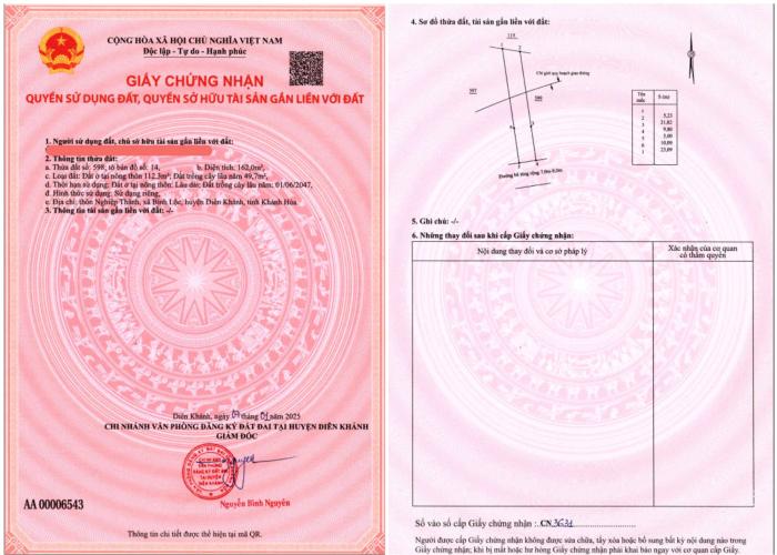 Khu vực: Huyện Diên Khánh, Khánh Hòa Ngày: 16:42 | 20/01/2026 Giá: 3,000,000,000 Vnđ