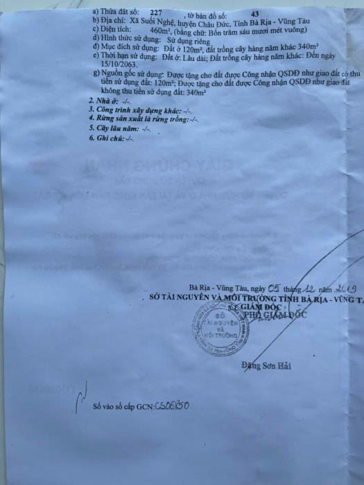 Diện tích: 460 m2 Giá: 3,500,000,000 Vnđ Quận/Huyện: Huyện Châu Đức Tỉnh/Thành phố: Bà Rịa Vũng Tàu