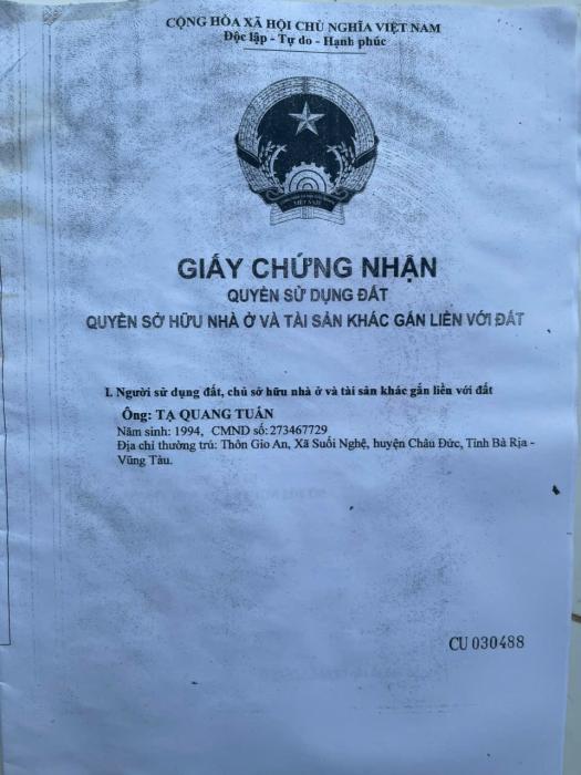 Khu vực: Huyện Châu Đức, Bà Rịa Vũng Tàu Ngày: 15:04 | 28/03/2026 Giá: 4,000,000,000 Vnđ