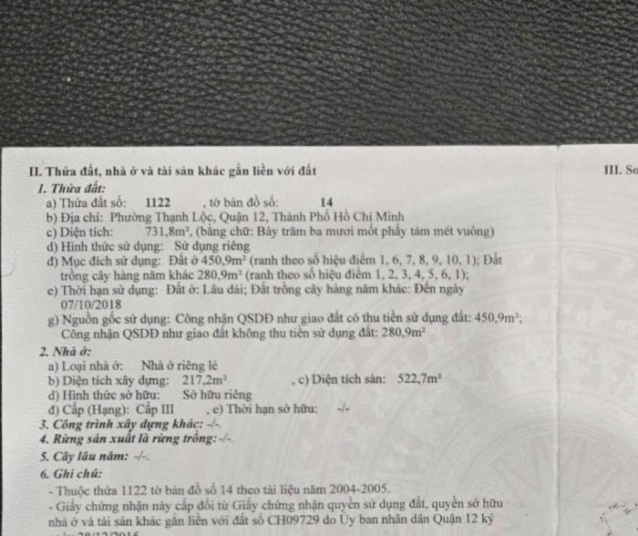 Diện tích: 732 m2 Giá: 28,980,000,000 Vnđ Quận/Huyện: Quận 12 Tỉnh/Thành phố: Hồ Chí Minh