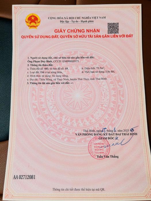 Khu vực: Huyện Thái Thụy, Thái Bình Ngày: 22:07 | 07/07/2025 Giá: 1,600,000,000 Vnđ