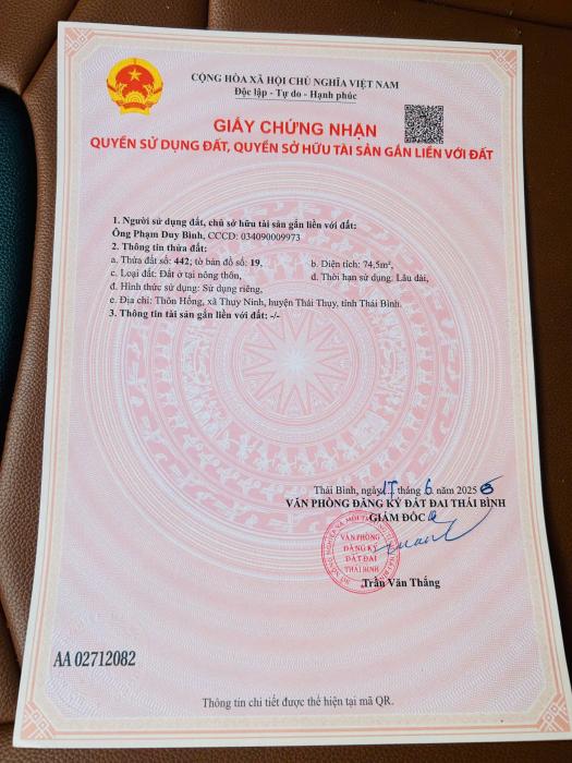 CHÍNH CHỦ CẦN BÁN GẤP LÔ ĐẤT Tại XÃ THÁI NGUYÊN, THÁI THUỴ, THÁI BÌNH