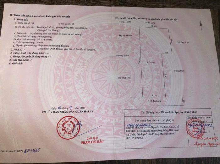 BÁN ĐẤT NGÕ 1085 NGÔ GIA TỰ, HẢI AN, HẢI PHÒNG ĐẤT NỞ HẬU PHÁP LÝ RÕ RÀNG