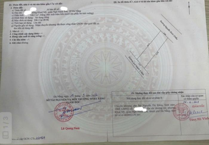 Diện tích: 146 m2 Giá: 7,850,000,000 Vnđ Quận/Huyện: Quận Ngũ Hành Sơn Tỉnh/Thành phố: Đà Nẵng