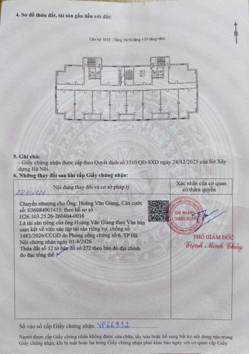 CẦN BÁN NHÀ 1012 - CHUNG CƯ