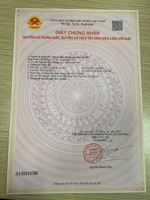 Bán lô đất 164,2m2 ( full thổ cư ) Tại Tổ Dân Phố Minh Châu – Phường Thảo Nguyên – Sơn La. ⚡️Vị trí đẹp , khu đông dân cư, dân trí cao. ✅ Pháp lí...