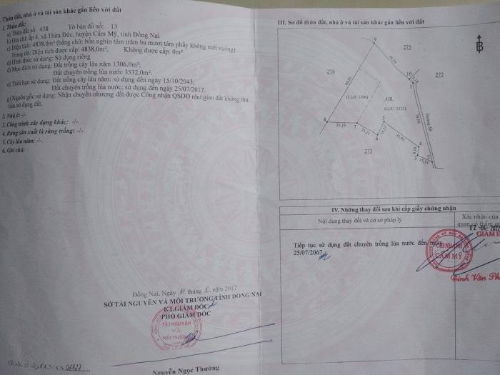 Diện tích: 4838 m2 Giá: 7,000,000,000 Vnđ Quận/Huyện: Huyện Cẩm Mỹ Tỉnh/Thành phố: Đồng Nai