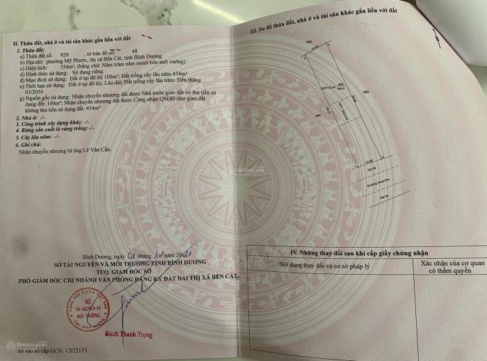 Diện tích: 554 m2 Giá: 6,000,000,000 Vnđ Quận/Huyện: Thị xã Bến Cát Tỉnh/Thành phố: Bình Dương