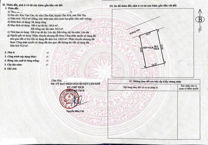 * Địa chỉ: Khu vực Vực Câu, thị trấn Cẩm Khê, huyện Cẩm Khê, Phú Thọ* Diện tích: 192,9m² – đất nở hậu, phong thủy tốt * Giá bán: 3 tỷ 250triệu có thương lượng (giá cực hợp lý, chỉ bằng nửa khu đấu giá Vực Câu)