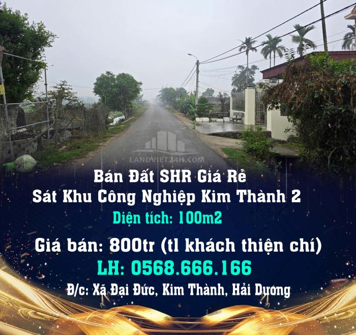 Diện tích: 100 m2 Giá: 800,000,000 Vnđ Quận/Huyện: Huyện Kim Thành Tỉnh/Thành phố: Hải Dương