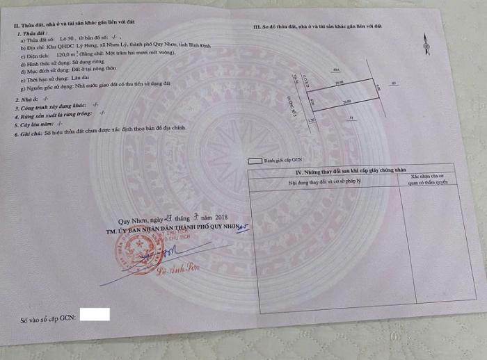 - Diện tích 120m² – SỔ ĐỎ RIÊNG – CẠNH FLC & EO GIÓ – GIÁ CHỈ 30 TRIỆU/M²- Địa chỉ: Lô L50, Khu quy hoạch dân cư Lý Hưng, xã Nhơn Lý, TP. Quy Nhơn, Bình Định.- Cách biển chỉ 200m, có thể đi bộ vài phút là tới bãi tắm trong xanh, bờ cát mịn.- Cách danh thắng Eo Gió chỉ 600m – một trong những điểm du lịch hút khách nhất miền Trung.- Liền kề quần thể nghỉ dưỡng 5 sao FLC Quy Nhơn, trung tâm du lịch – giải trí – nghỉ dưỡng quy mô hàng đầu khu vực.- Khu vực đang phát triển mạnh về hạ tầng, dân cư đông, tiện ích hoàn thiện: đường bê tông rộng rãi, điện nước đầy đủ, gần chợ, trường học, khu dịch vụ du lịch.- Pháp lý: Sổ đỏ chính chủ, sang tên công chứng ngay.- GIÁ BÁN: 30 triệu/m² (tổng giá 3,6 tỷ).- Chính chủ bán trực tiếp, không qua môi giới – giá tốt, minh bạch, có thương lượng cho khách thiện chí.- LIÊN HỆ XEM ĐẤT & LÀM VIỆC TRỰC TIẾP: 0969 218 189 – Nguyễn Ban Mai(Vui lòng để lại tin nhắn nếu chưa kịp nghe máy)