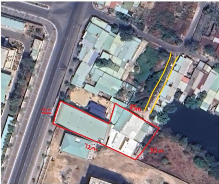 Kích thước: mặt tiền 18m, dài ~72m, nở hậu 30m