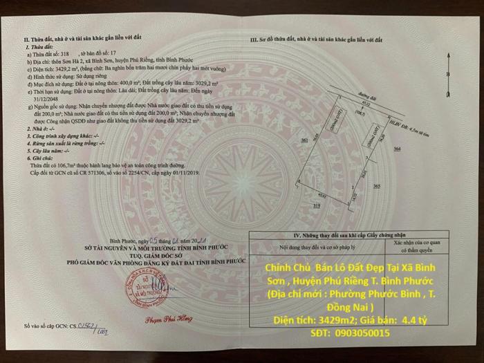 Diện tích: 3429 m2 Giá: 4,400,000,000 Vnđ Quận/Huyện: Huyện Phú Riềng Tỉnh/Thành phố: Bình Phước