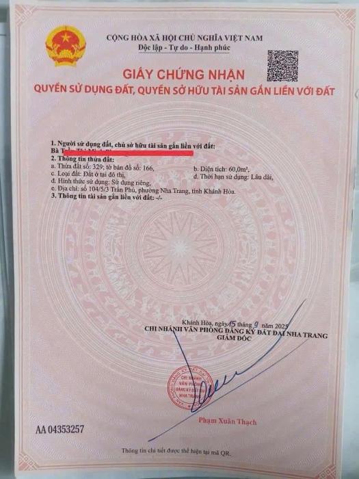 Khu vực: Thành phố Nha Trang, Khánh Hòa Ngày: 14:28 | 11/03/2026 Giá: 1,600,000,000 Vnđ