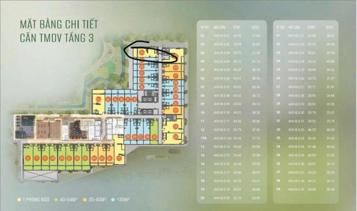 * Căn TMDV gốc B3.24 -2pn+1wc / 56m2 : Hướng đông - view nội khu công viên